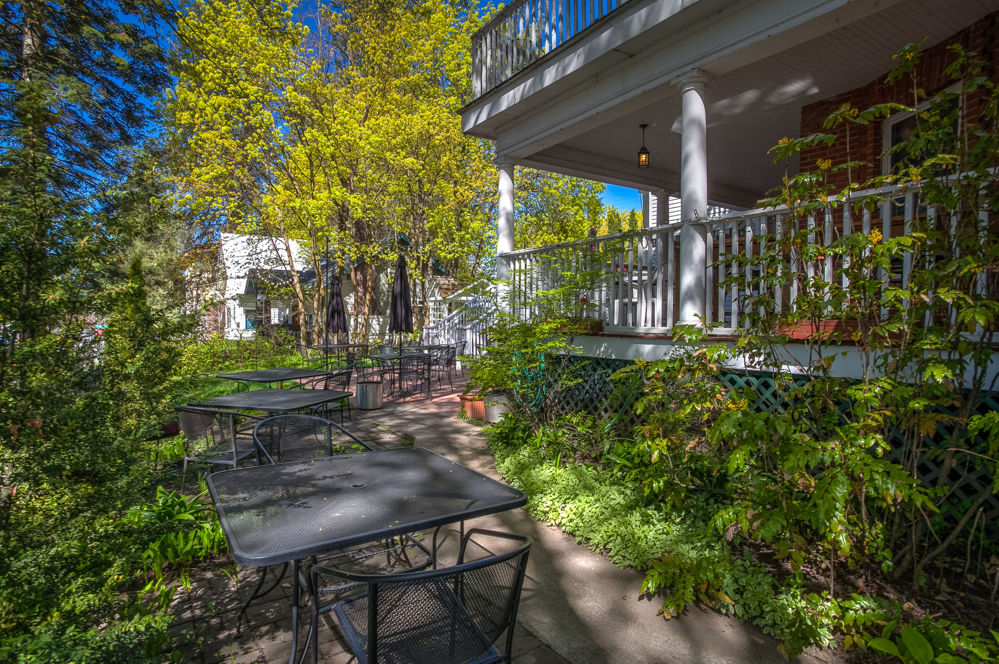 Lodging and restaurant guests may enjoy and relax in the garden areas or decks while listening to music, enjoying light appetizers, dinner options and drink specials. During the winter months, enjoy dinner by one of our two fireplaces for a cozy evening out.